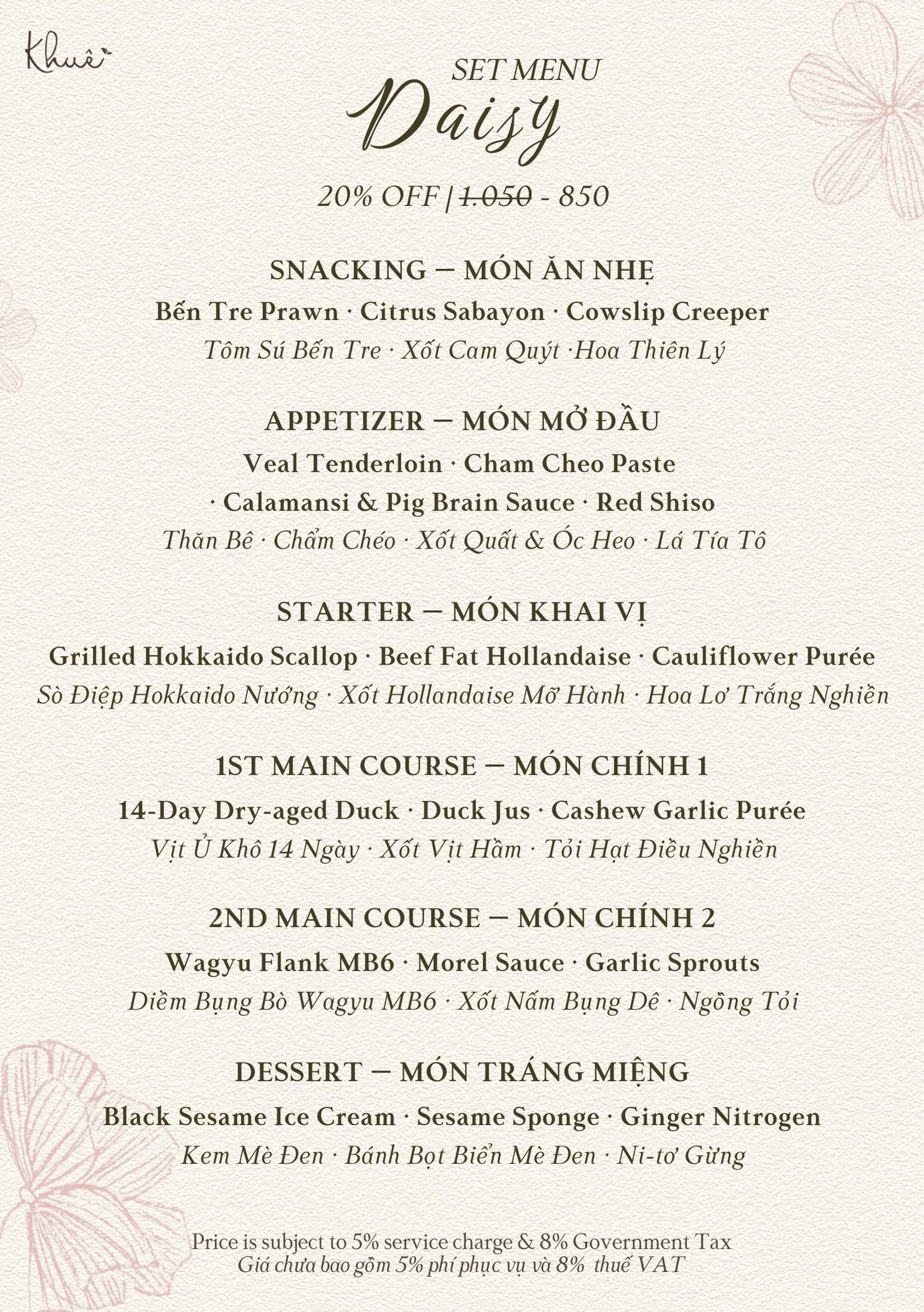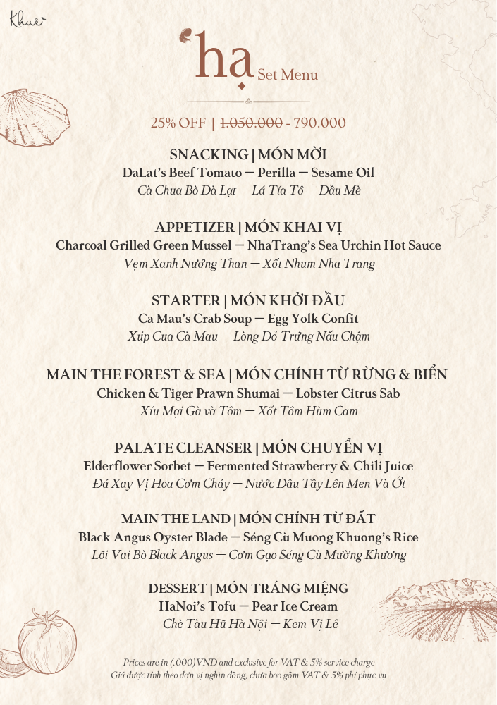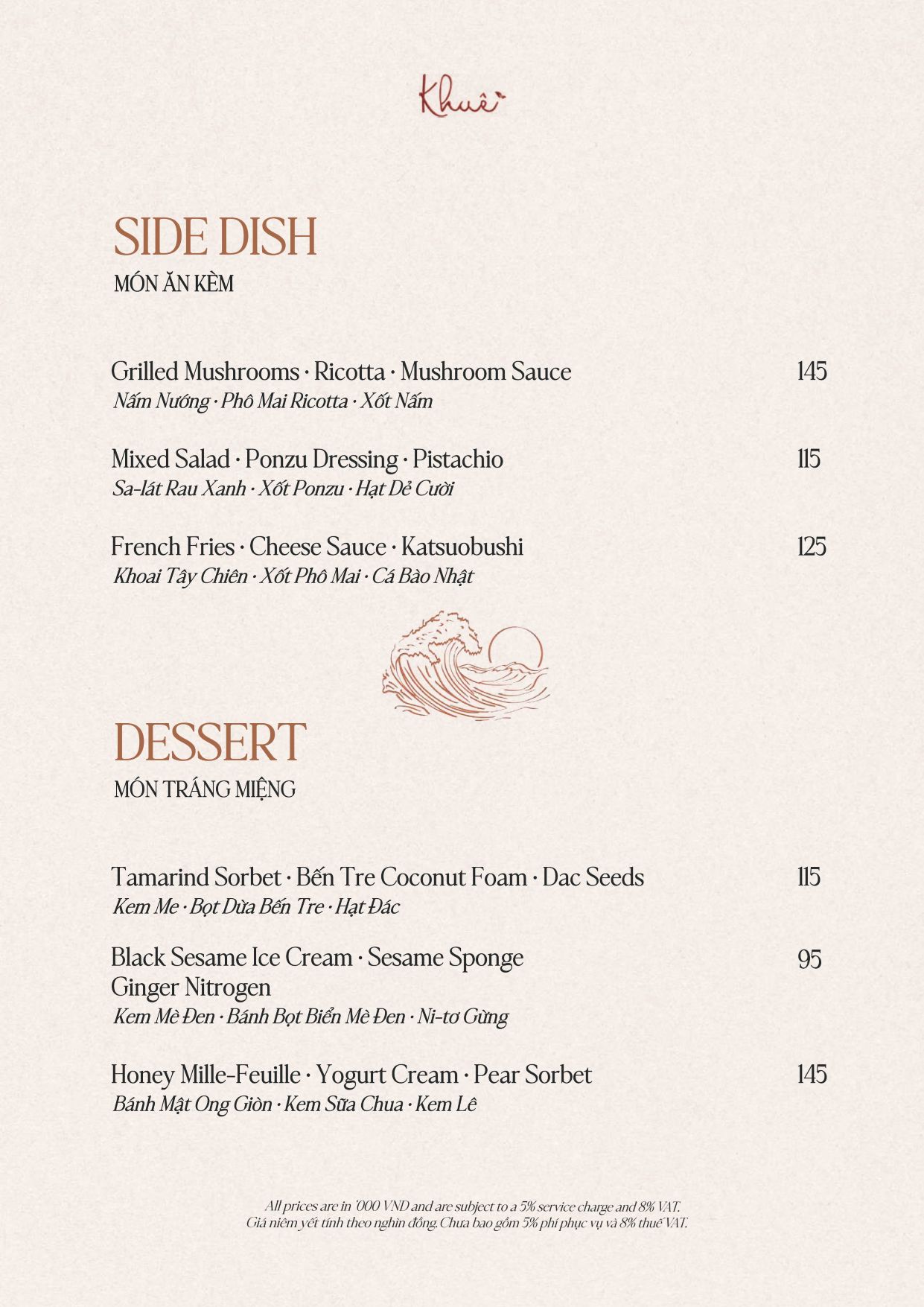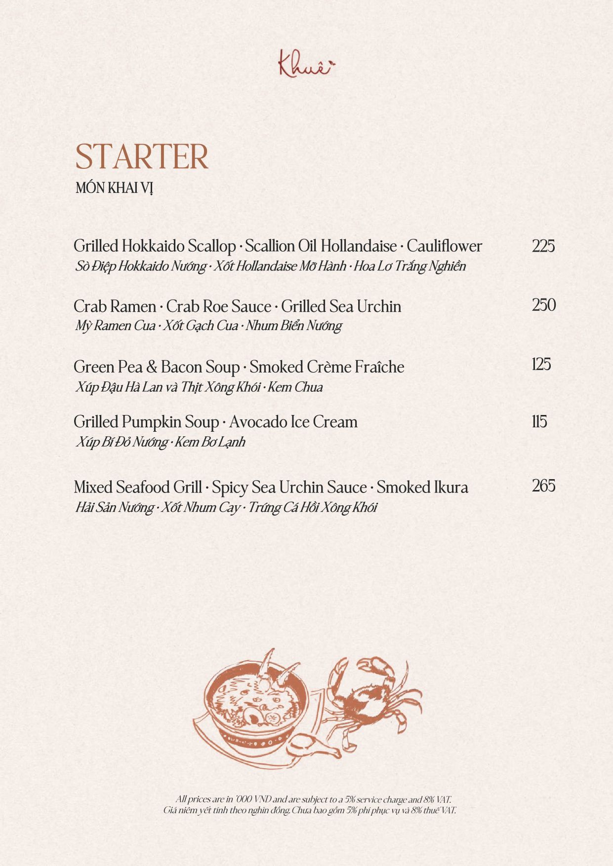 With a journey that spans from Vietnam to many corners of the world, Chef Anh Tu brings cultural stories into each dish—told through modern techniques, yet rooted in tradition. Guided by the philosophy that cuisine has no boundaries, his creations go beyond borders to deliver flavors that feel both familiar and refreshingly new. This makes the dining experience at KHUÊ not just a meal, but a heartfelt exploration of culture, memory, and connection.