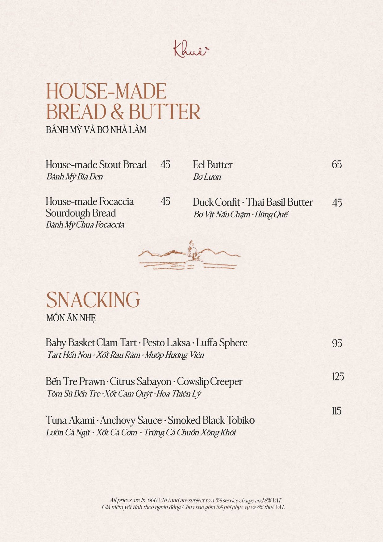 At Khuê, the philosophy that Cuisine has no boundaries is the starting point for every creation. Each dish is inspired by emotion, memory, and connection. From humble street food to the comforting flavors of a home-cooked meal—every dish tells its own story, aiming to touch the heart of the diner.